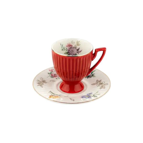 Momaz 6pcs Classic Red Coffee Cup with Floral Saucer