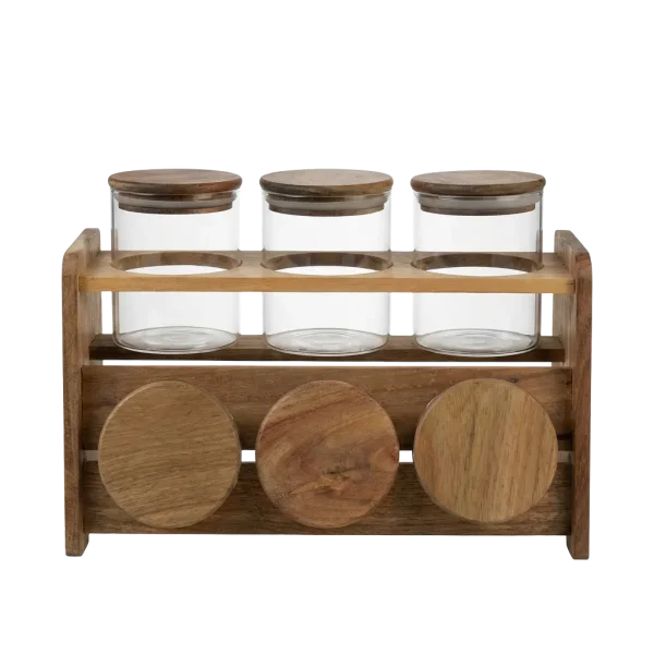 Momaz 6pcs Glass Spice Jar Set with Wooden Stand