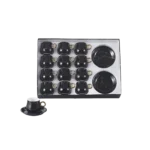 Momaz 6Pcs Round Black Marble Cups with Wooden Stand