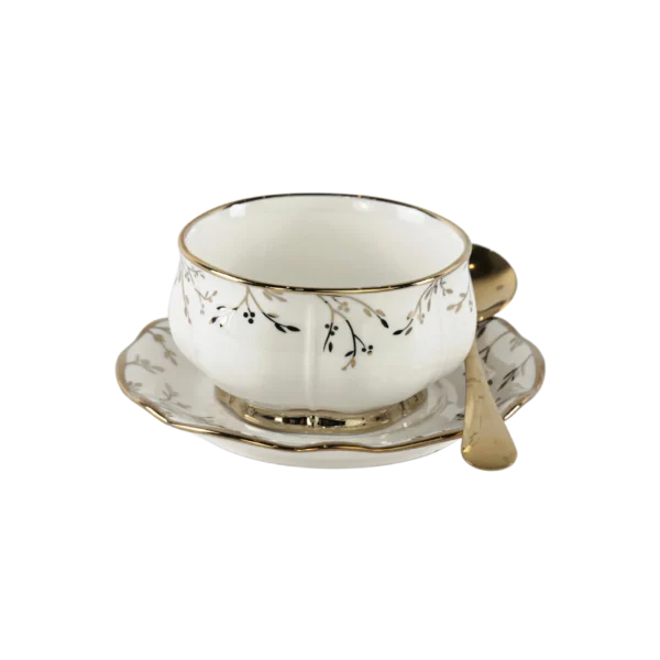 Momaz 6Pcs White & Gold Bowls with Saucers & Spoons