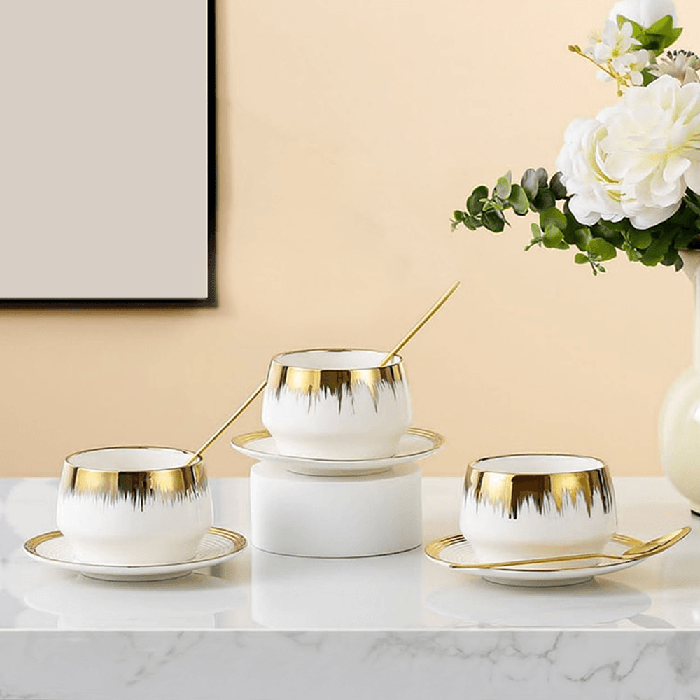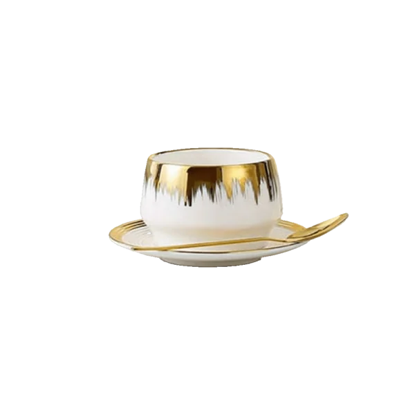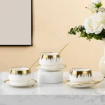 Momaz 6Pcs White & Gold Porcelain Serving Bowls Set with Dish & Spoon