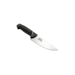 The knife is crafted from high-quality German steel, offering exceptional sharpness, durability, and precision cutting.