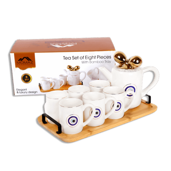 Momaz Blue Eye Tea Set with Bamboo Tray
