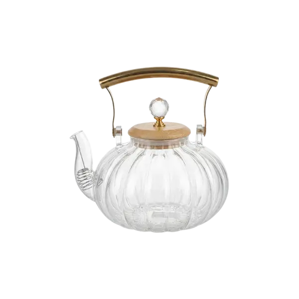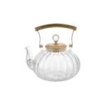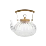 Momaz Classic Ribbed 1L Glass Teapot with Golden Handle