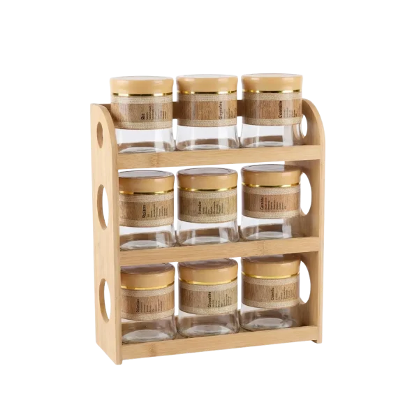 Momaz Glass 9pcs Spice Jar Set with Bamboo Rack