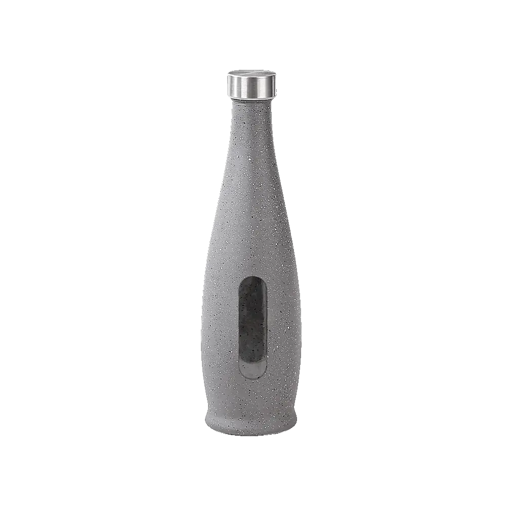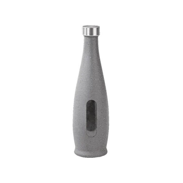 The bottle is crafted from high-quality glass, ensuring clarity and durability. It’s enveloped in a stunning granite grey layer, providing both protection and a sleek, modern aesthetic.