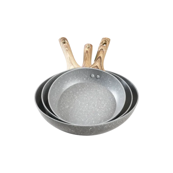 Momaz Granite Non-Stick Frying Pan Grey Set of 3 Piecesطقم مقالي جرانيت رمادي غير لاصقة من مومـاز 3 قطع