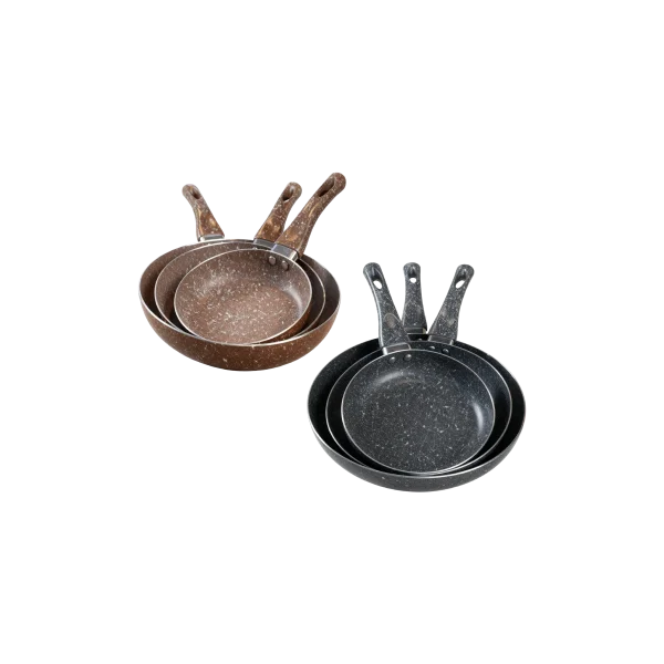 Momaz Granite Non-Stick Frying Pan Set of 3 Pieces & 2 Colors Brown and Greyطقم مقالي جرانيت بلونين البني والرمادي غير لاصقة من مومـاز 3 قطع