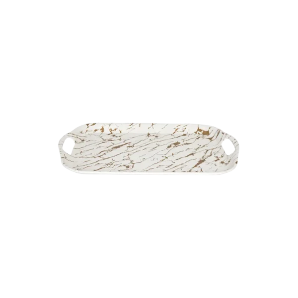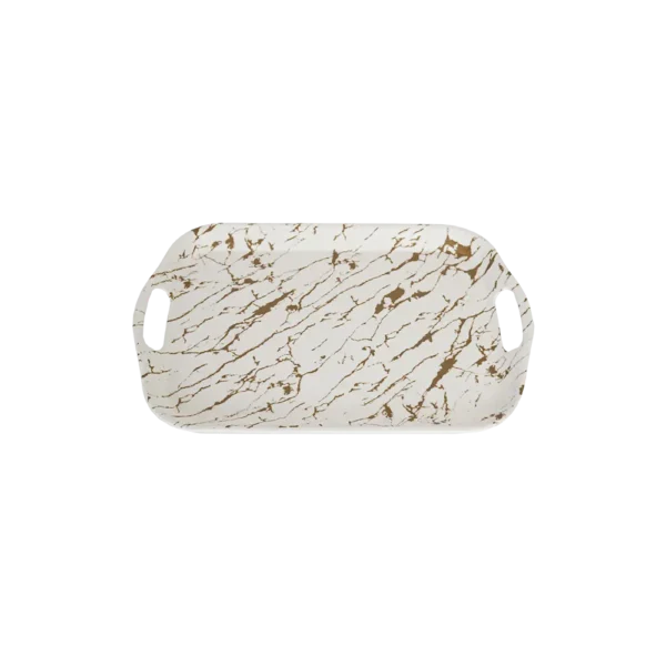 Momaz Melamine 33x27cm Marbled Design Gold & White Tray