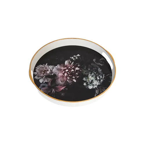 Momaz Melamine Round Serving Tray with Golden Rim