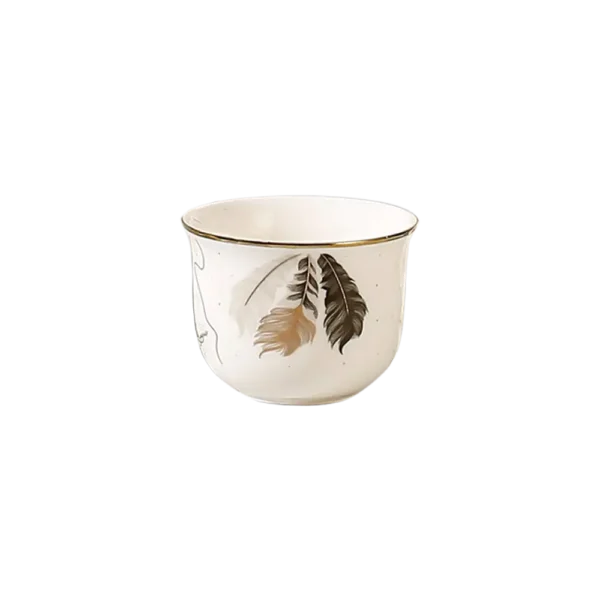 Decorated with delicate feather motifs and accented with golden rims for a refined look.