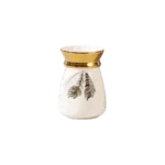 Adorned with subtle feather patterns and golden handles for a sophisticated look.