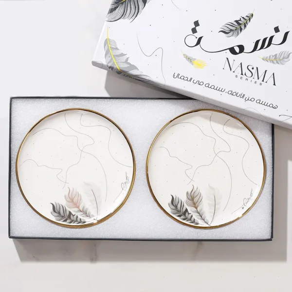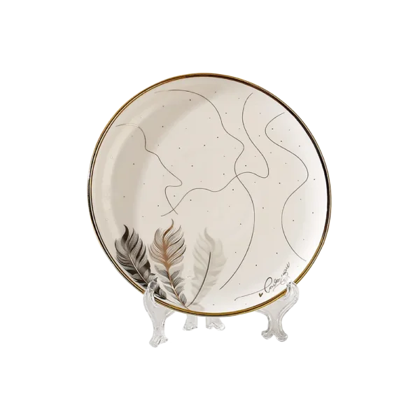 Decorated with delicate feather motifs and golden rims for a luxurious touch.