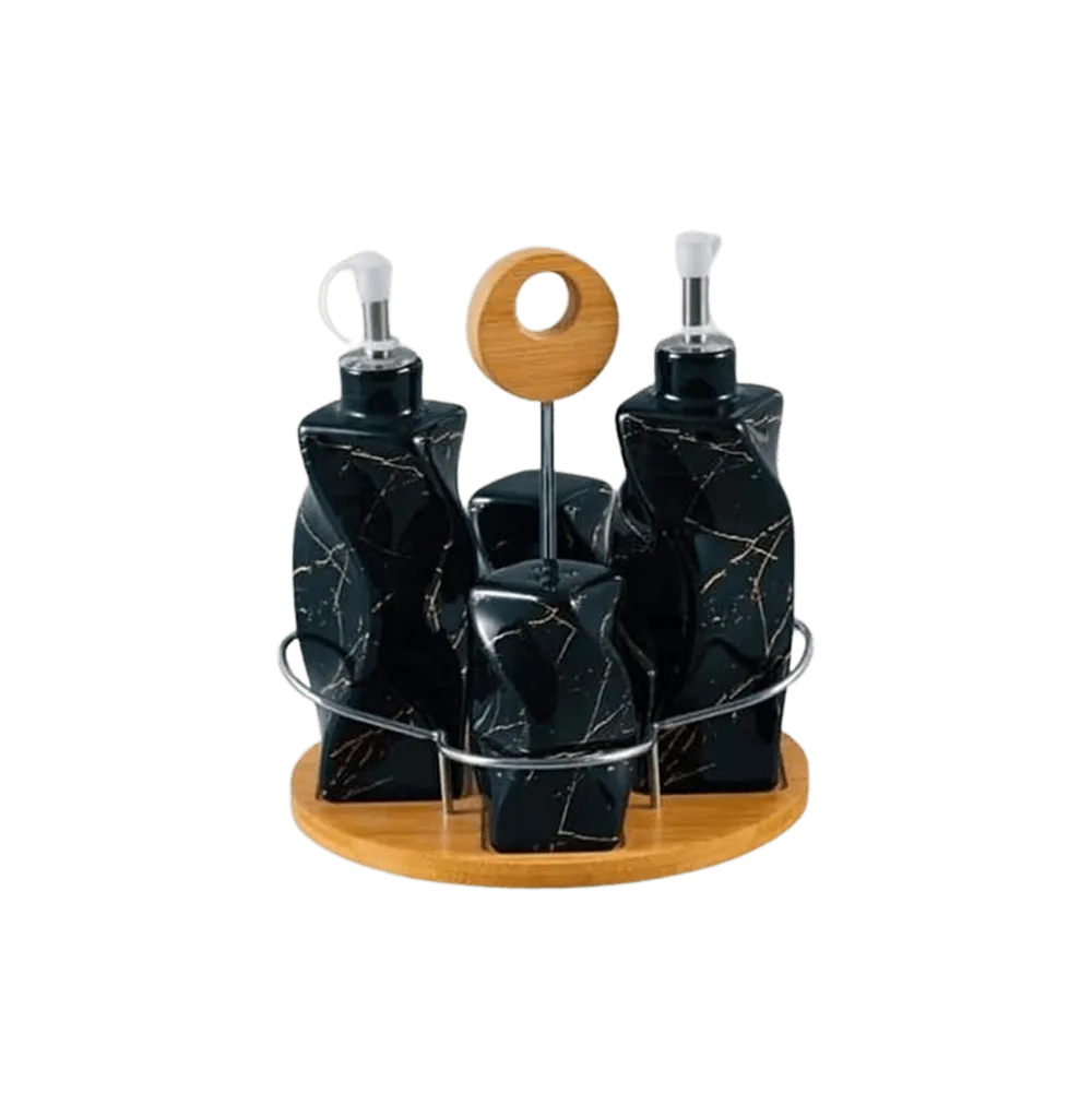 Momaz Oil & Vinger Black Marble Set with Wooden Stand