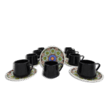 Comes with 6 grey coffee cups with 6 mandela patterned cups