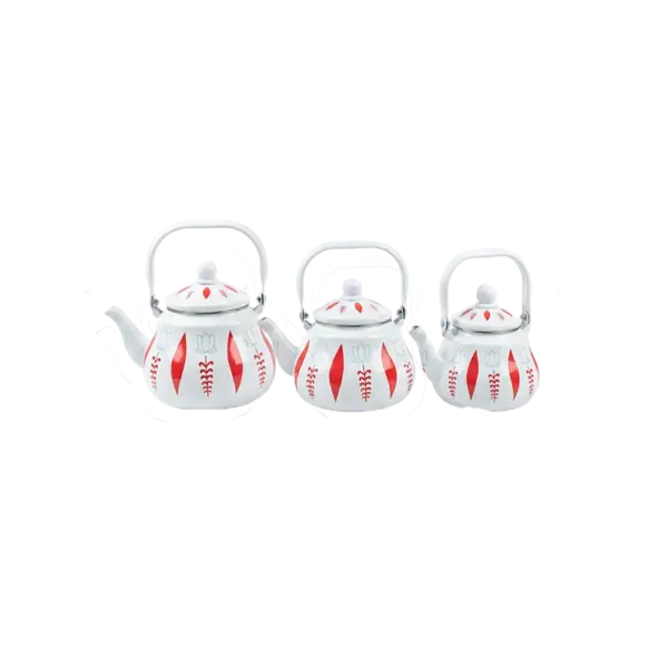 Momaz set of 3 Red Elegant Floral Enamel Tea Kettle