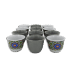 Comes with 12 black coffee cups with 12 mandela patterned saucer