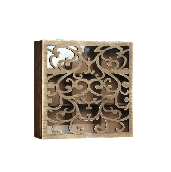 Patterned 6-Section Brown Wooden Tea Box
