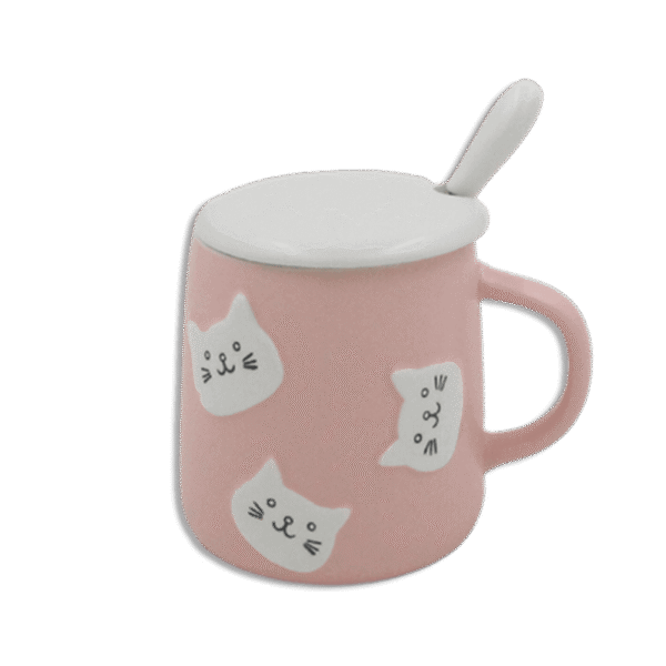 Pink Cats Mug with Lid & Spoon