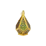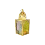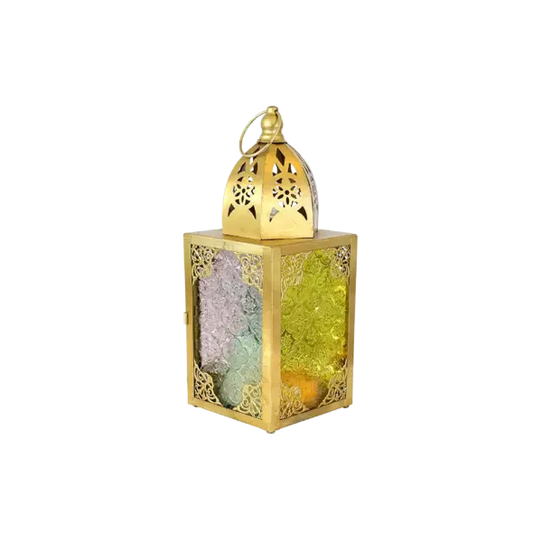 Ramadan Gold Square Lantern with Embossed Multicolor Glass