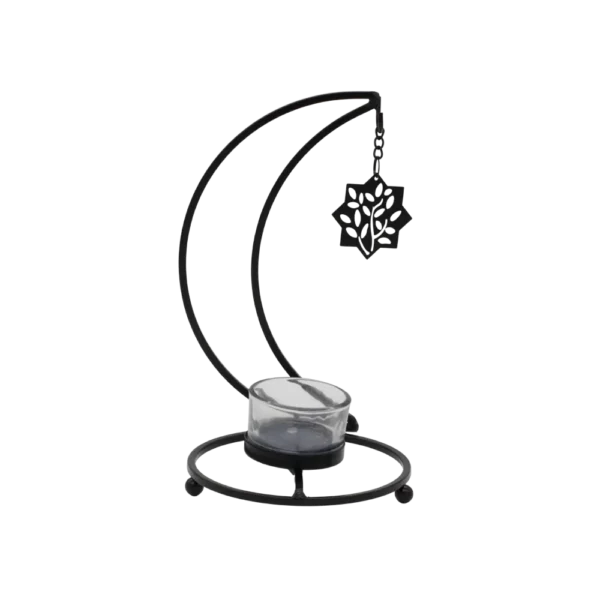 Ramadan 22x10cm Golden Candle Holder Stand with Crescent Design