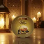 Features elegant crescent moon, lantern, and mosque artwork inspired by Ramadan décor.
