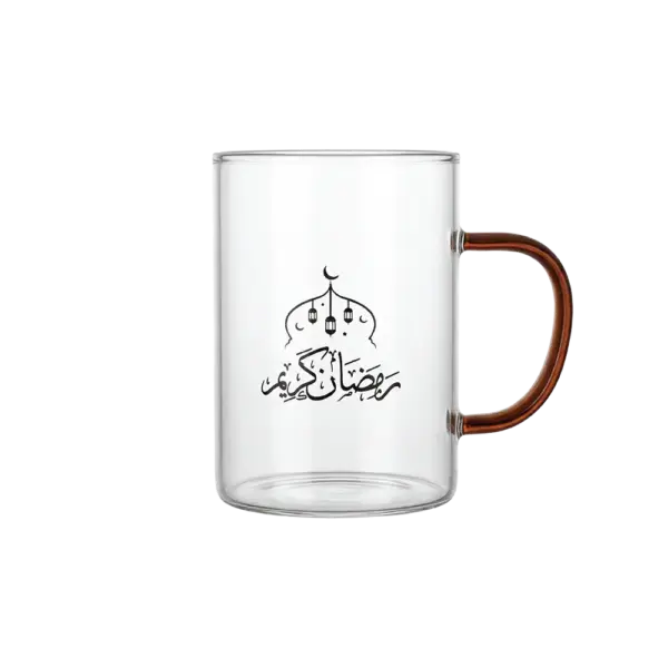 Ramadan Kareem 300ml Glass Mug with Brown Handle