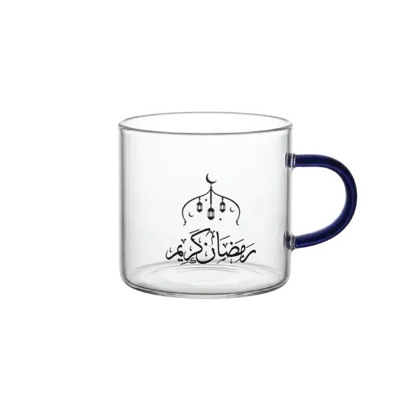 Ramadan Kareem Glass Coffee Cup with Blue Handle
