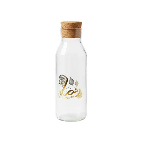 Ramadan Karim Glass 1L Transparent Bottle with Cork Lid
