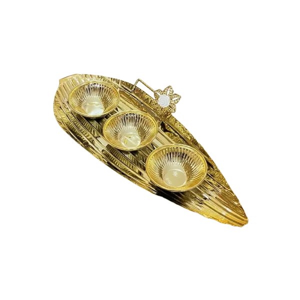 Ramadan Metal Gold Three Bowl with Serving Tray