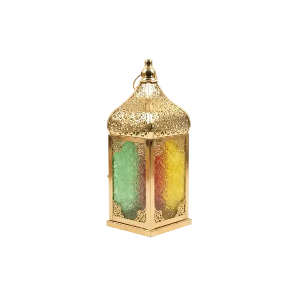 Ramadan Ornate Gold Lantern with Embossed Glass Panels