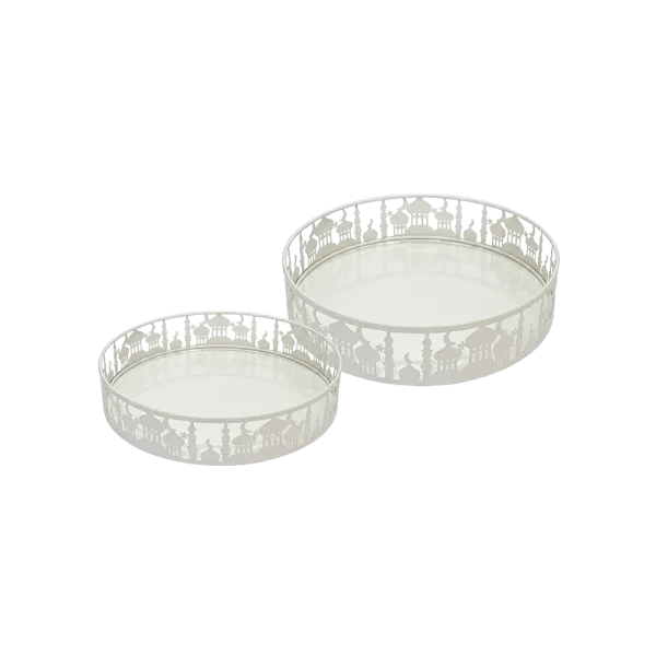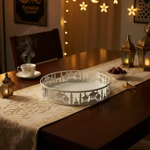 Ramadan Round Metal White Serving Tray