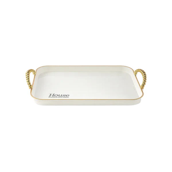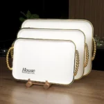 Rectangular Shaped 3 Pcs White with Gold Frame Trays Set