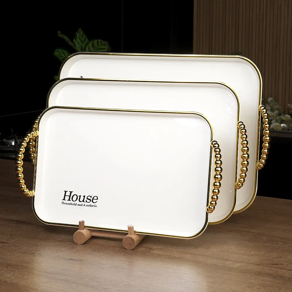 Each tray is adorned with a refined gold trim, adding a touch of luxury to your serving collection.