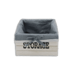 Rectangular White Wooden 28x20x11cm Basket with Fabric