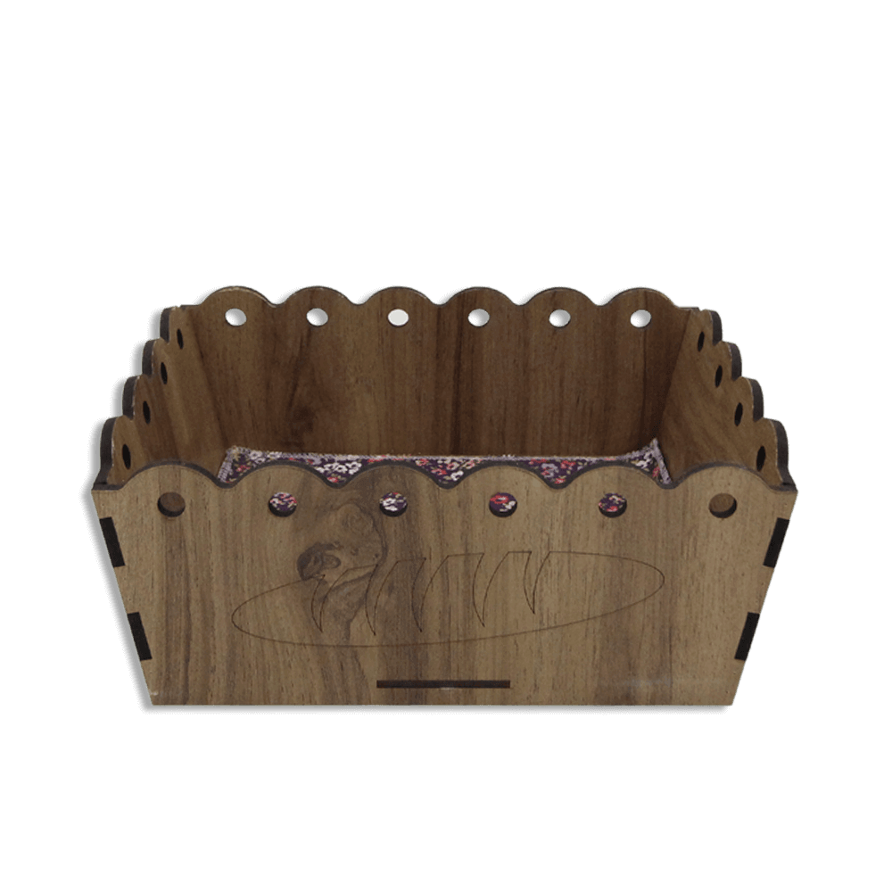 Rectangular Wooden 26x17x9cm Basket with Colored Fabric