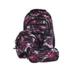 The main backpack offers ample storage with a large main compartment for books and larger items, a front pockets for smaller essentials, and side pockets for additional storage, making it perfect for school and day trips.
