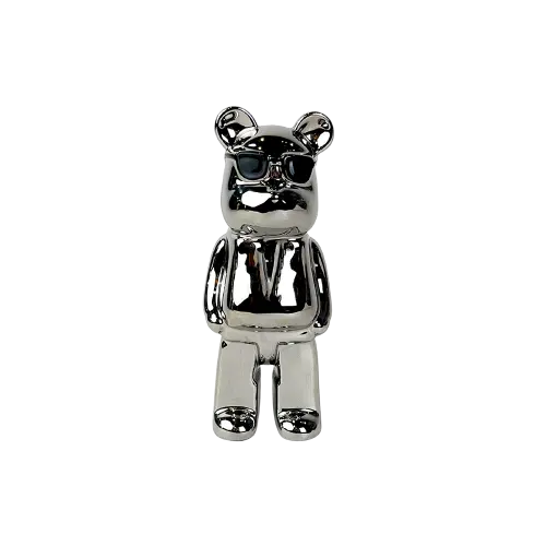 1- Trendy Design: Fun bear figurine wearing gold sunglassesunique and eye-catching.