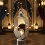 Silver Ramadan Crescent Lantern Table Décor