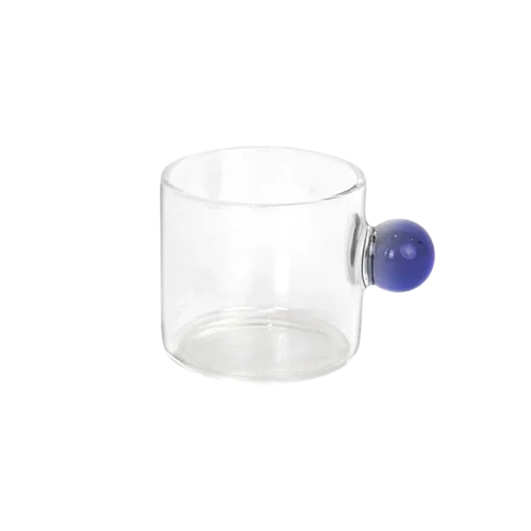 Small Glass Transparent Coffee Cup with Blue Ball Handle