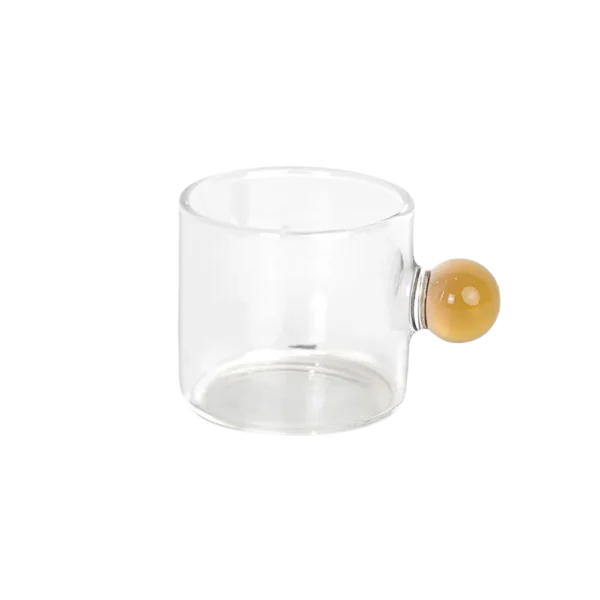 Small Glass Transparent Coffee Cup with Yellow Ball Handle