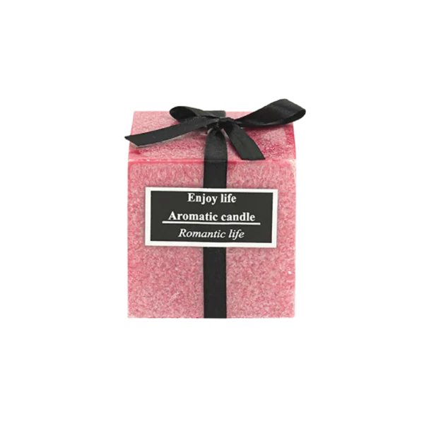 Squared 7cm Pink Scented Candle with Ribbon
