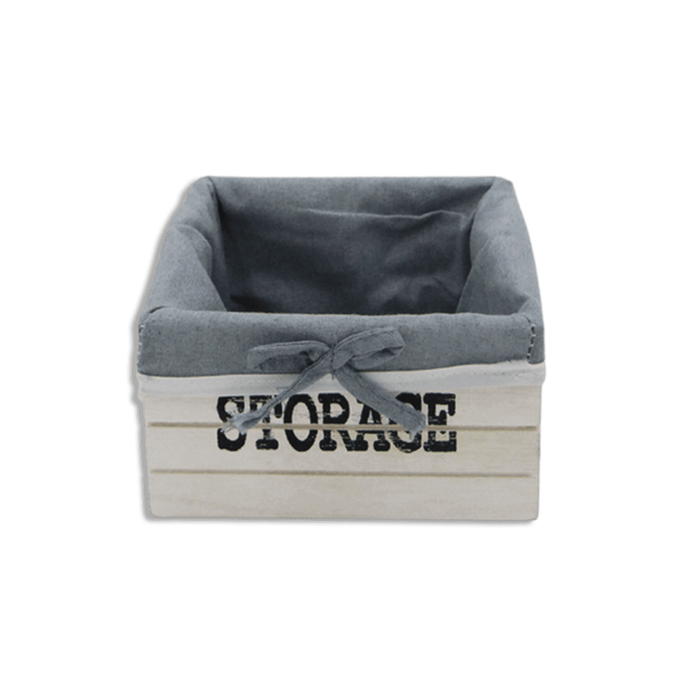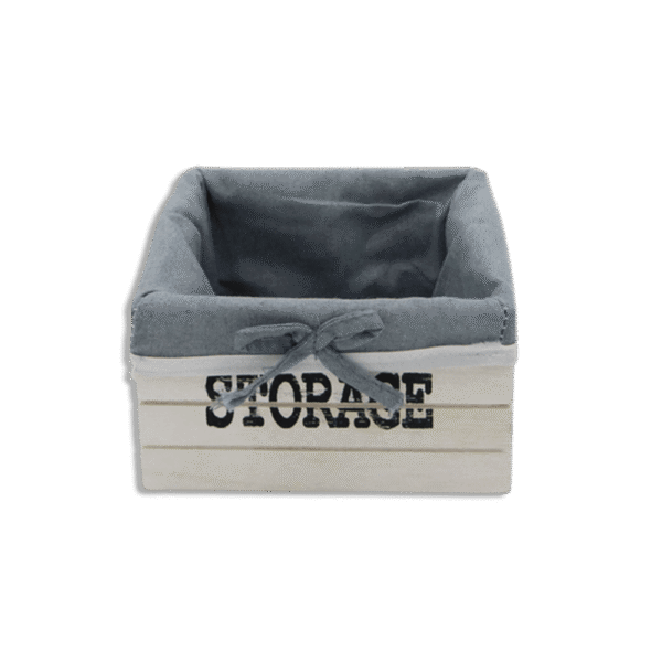 Squared White Wooden 17cmx8cm Basket with Fabric