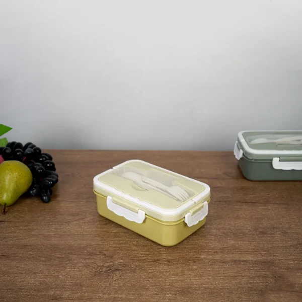 Stainless 2 Sections Yellow Rectangular Lunch Box with Spoon & Fork