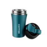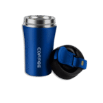 Stainless 450ml Black Coffee Mug with Straw Button