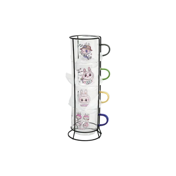Comes with a sleek black metal stand that keeps the cups neatly stacked — perfect for saving counter space and stylish display.