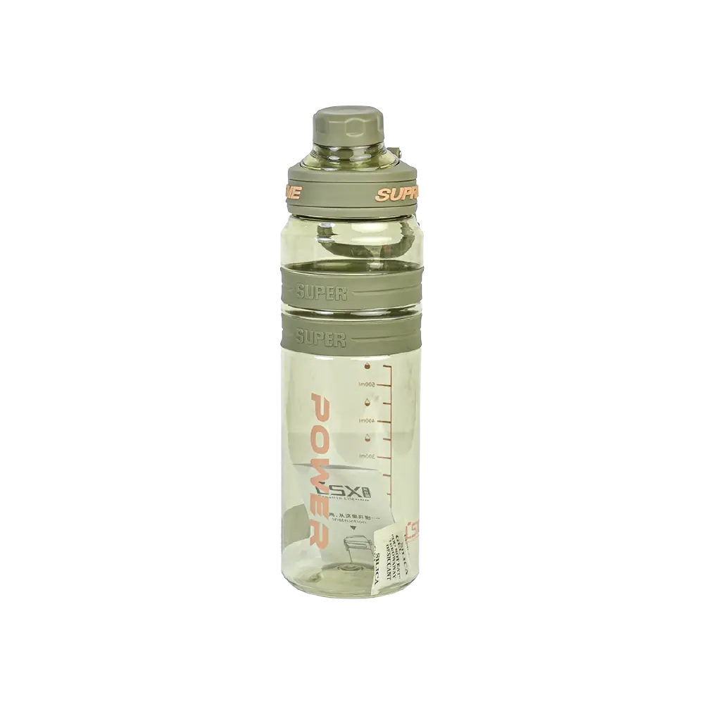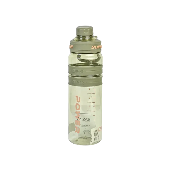 The bottle features a transparent body with measurement markings in milliliters and ounces, allowing you to easily track your daily water intake.