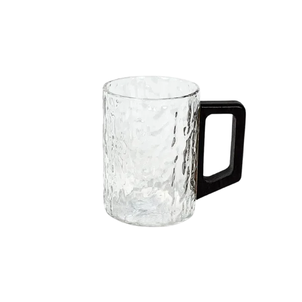 A bold, rectangular handle contrasts beautifully with the organic texture of the glass, giving it a sleek, contemporary look.