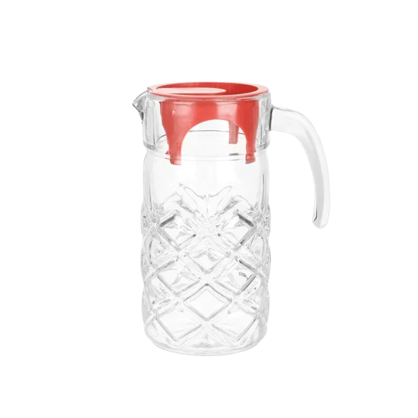 Transparent 1.3L Patterned Glass Jug with Red Lid