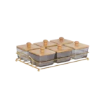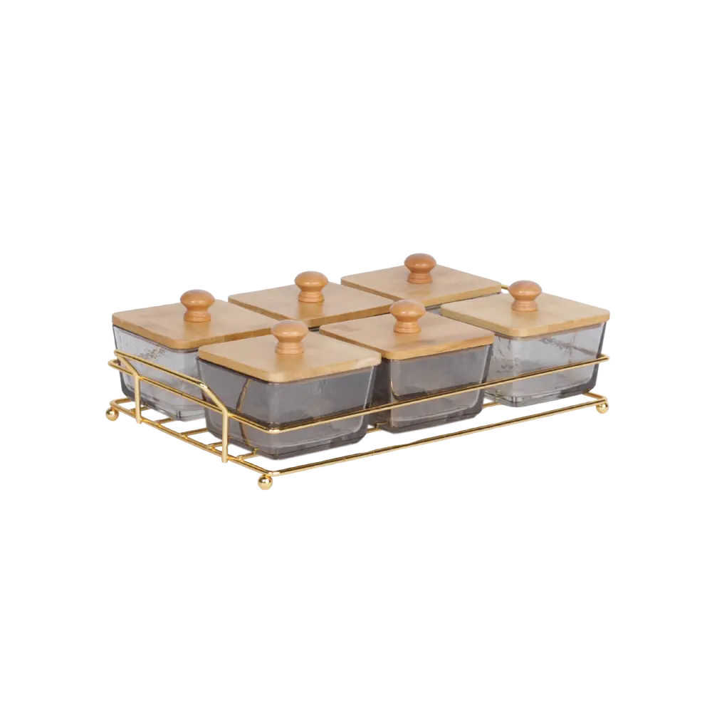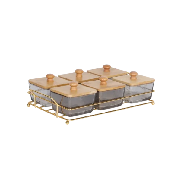 Transparent Black 6-Sections Serving Set with Wooden Lids & Iron Stand